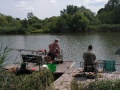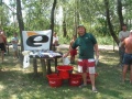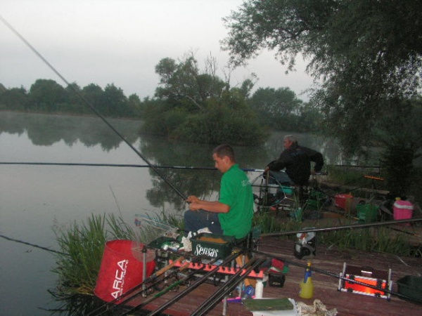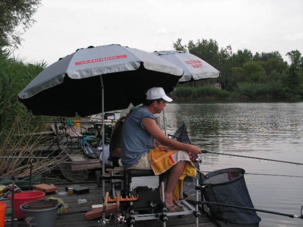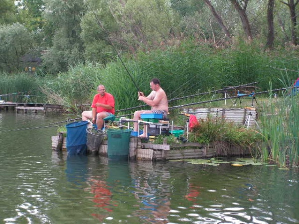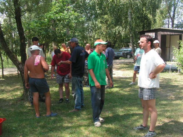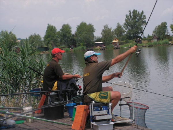 Az első mérlegelés 13órakor volt,a legjobb csapat 9580g-ot fogott a leggyengébb pedig 2360g-ot.A nagy meleg miatt az ebéd 15-16órára tolódott ami egy csodálatos csülkös bableves volt (köszönet Kürtössy József szakácsunknak)Ez után következett 17órakor a második mérlegelés mely kicsit gyengébben sikerült mint az első mert itt a legjobb csapat 6960g-ot,a leggyengébb pedig 1720g-ot fogott.Délutánra enyhült valamelyest az idő ,de a nyugati oldalon a versenyládákon még mindig tojást lehetett volna sütni,amit csak úgy lehetett elviselni,hogy ha megmártóztunk a tó vizében.A harmadik mérlegelés 20órára esett amit 1 óra szünet követett,de közben19órakor megkezdődött egy maratoni csirkecomb sütés ami éjjel fél egykor ért véget és az ebből készült finom étket a versenyzők legtöbbje, a szakácsok jóvoltából a helyükön fogyaszthattak el.Az éjszaki horgászat csak egy csapatnak volt nagyon eredményes ezért a reggeli negyedik mérlegelést náluk kellett elvégezni.Eredményük ekkor több mint 20kg volt.És itt már el is érkeztünk a harmadik étkezés idejéhez,egy mozgó svédasztalos reggeli amit ismét a szakácsok tálaltak fel a horgászhelyeken.A verseny 10órára ért véget s itt az utlsó mérlegelésen fogták a legtöbb halat.Volt olyan csapat aki 20kg fölött teljesített a reggeli órákban.